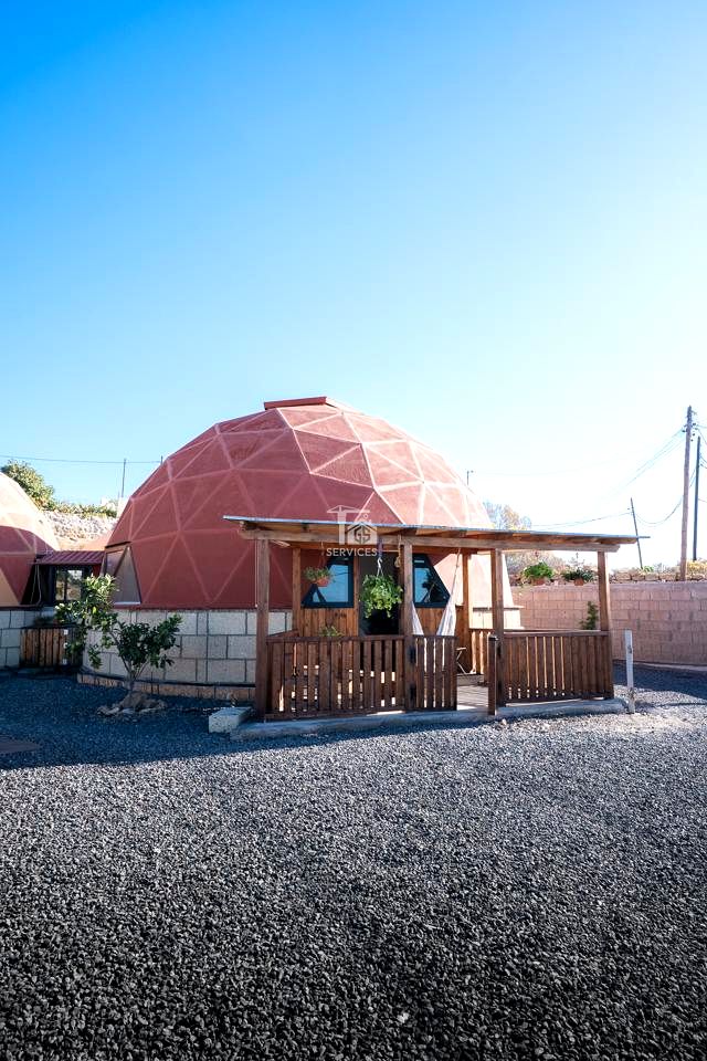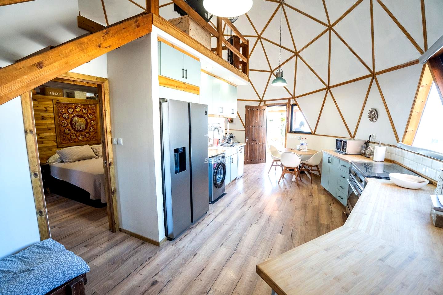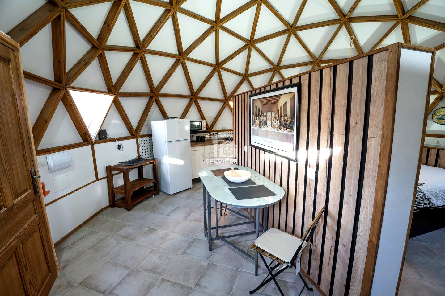 Le deuxième dôme, conçu comme un studio indépendant, comprend également une cuisine complète, une salle de bain privée et un espace de repos, idéal pour les invités ou une utilisation saisonnière. À côté de ce dôme se trouve un espace extérieur avec barbecue et solarium, parfait pour profiter de l’air libre et du climat tempéré de la région.