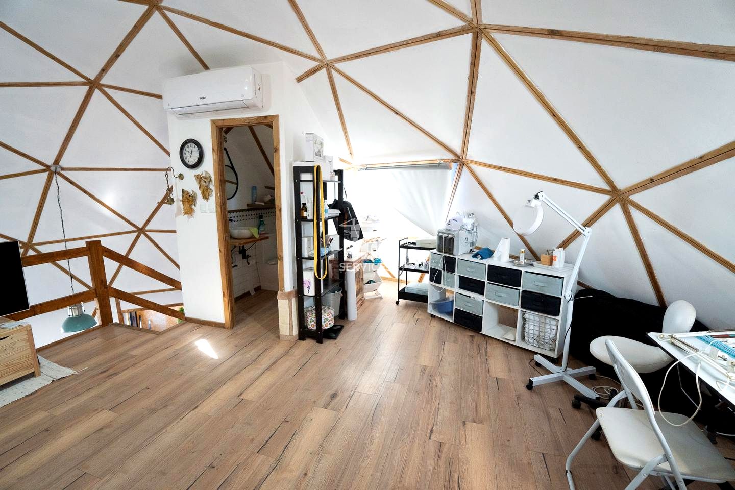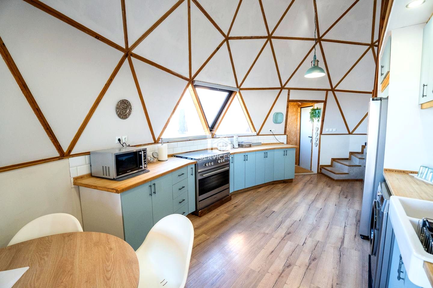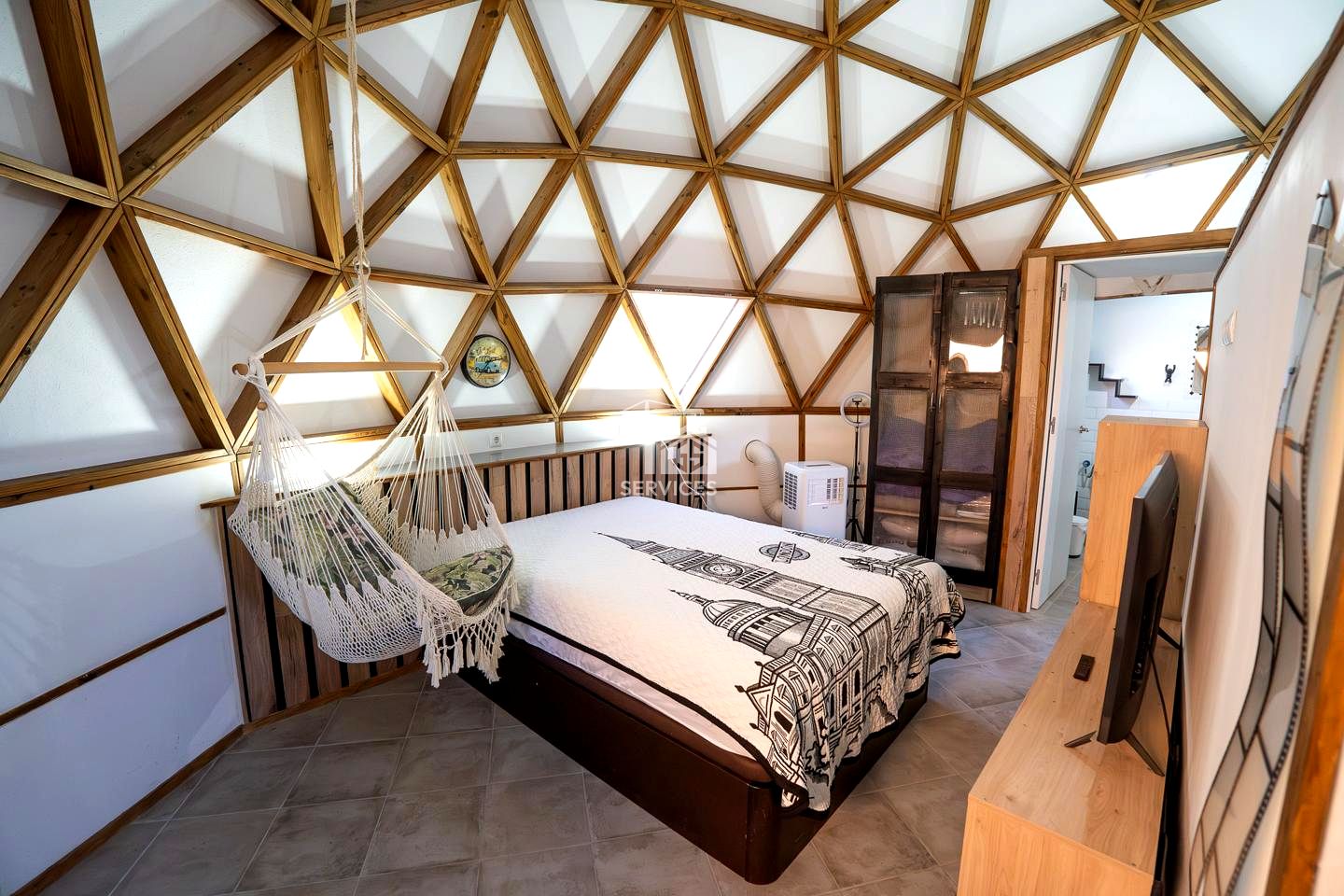 Le deuxième dôme, conçu comme un studio indépendant, comprend également une cuisine complète, une salle de bain privée et un espace de repos, idéal pour les invités ou une utilisation saisonnière. À côté de ce dôme se trouve un espace extérieur avec barbecue et solarium, parfait pour profiter de l’air libre et du climat tempéré de la région.