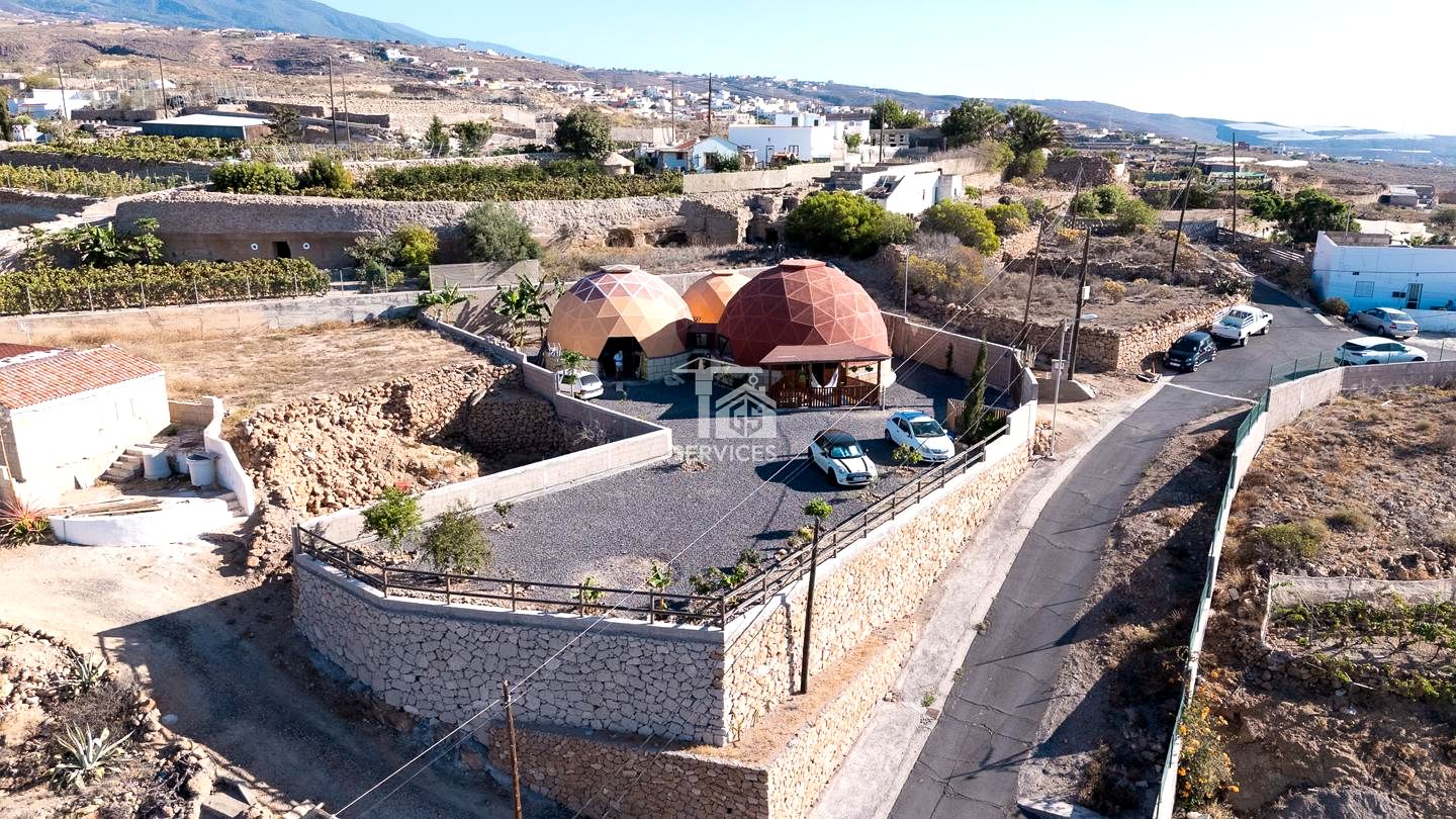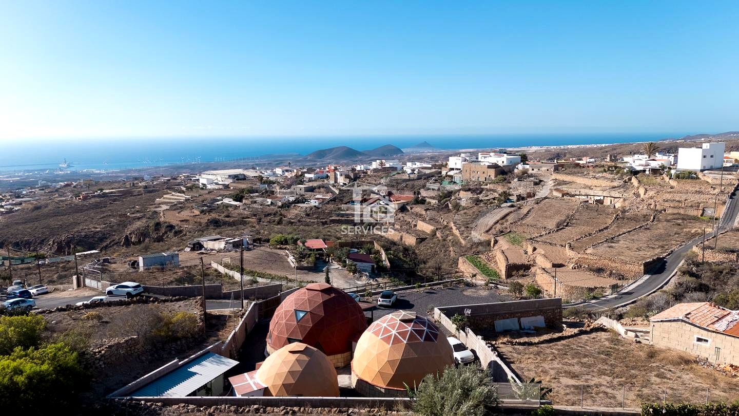 GS Services présente une propriété unique à Chimiche, au sud de Tenerife : une ferme de 961 m² abritant trois dômes géodésiques en bois construits artisanalement, un projet combinant architecture durable, design organique et confort moderne.