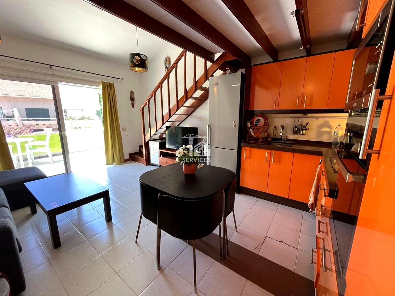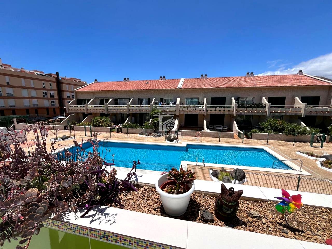L’intérieur est moderne, chaleureux et fonctionnel, avec une cuisine ouverte sur le salon, deux chambres confortables, une salle de bain complète et l’accès à des espaces communs avec piscine, idéaux pour profiter du climat ensoleillé de Tenerife toute l’année.